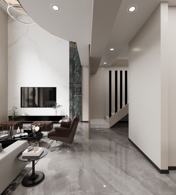 極簡主義:多使用單一的白色基調,材質偏向冷調,常見拋光的石材或金屬,強調極簡的視覺效果。