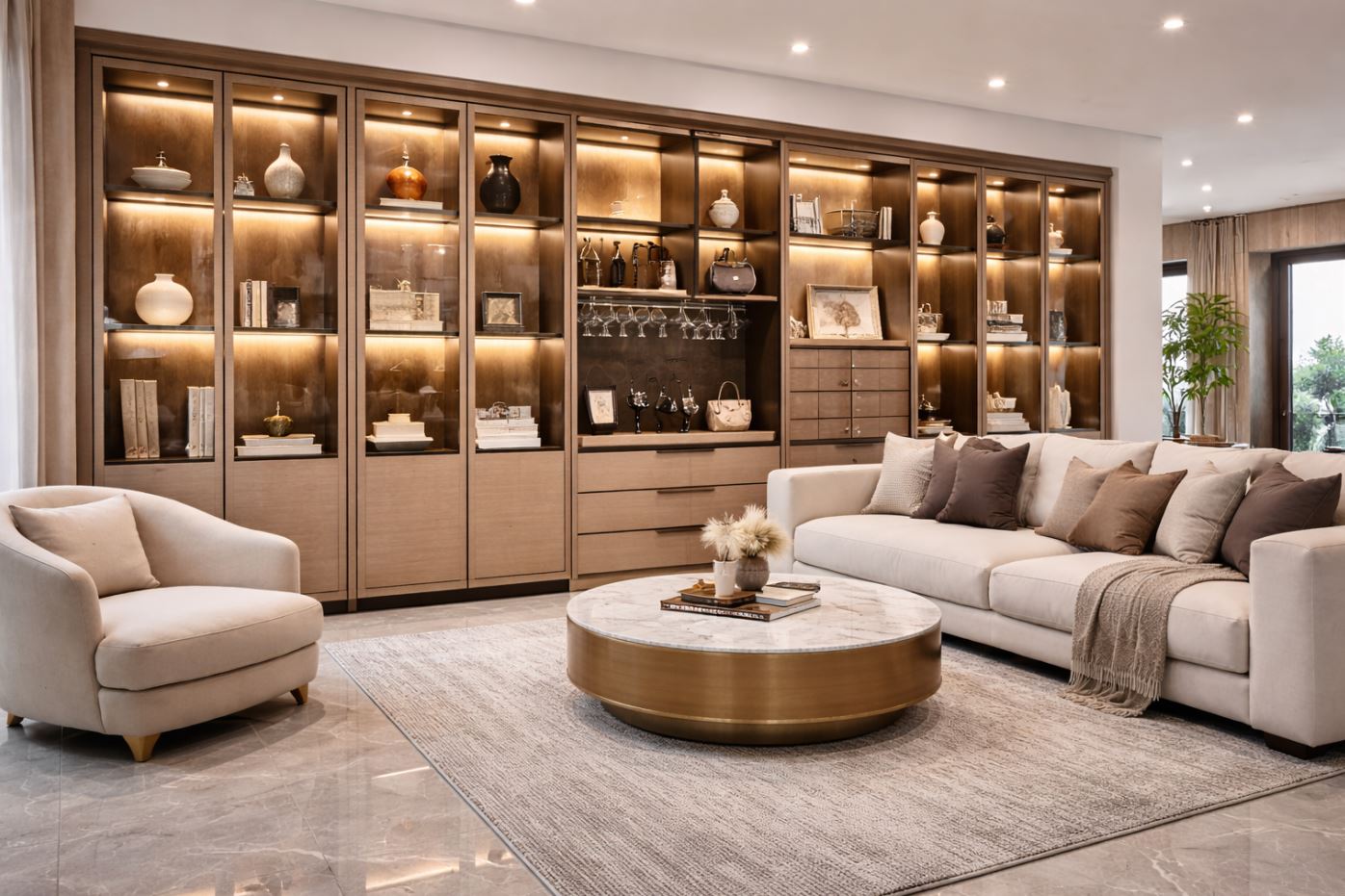 而展示櫃正是能同時兼顧美感、展示與機能的關鍵設計:一盞柔和燈光照在玻璃層板上,收藏品、酒杯、書籍瞬間變成家中最吸睛的風景。