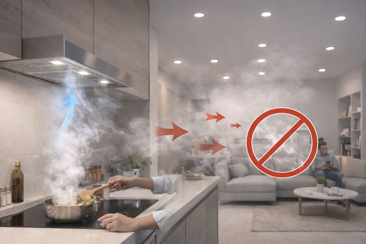 事實上,油煙回流並非開放式廚房的「宿命」,而是管線配置與排煙設計不到位所造成。