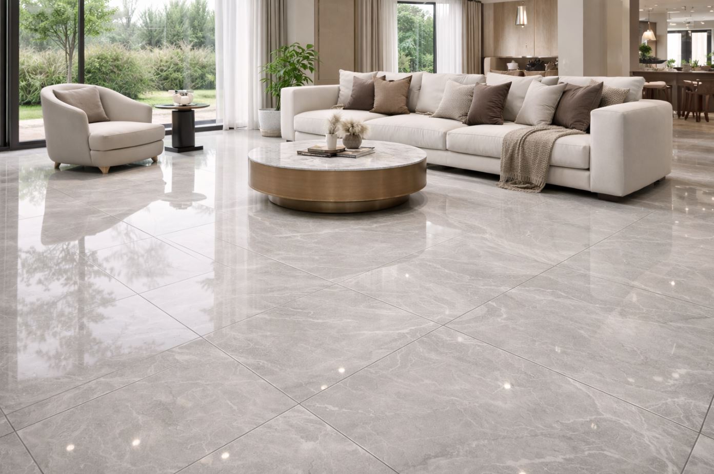 拋光石英磚地板兼具高質感與耐磨特性,是許多家庭與商空常見的地坪選擇,尤其能讓空間更明亮大器、清潔也相對省力。