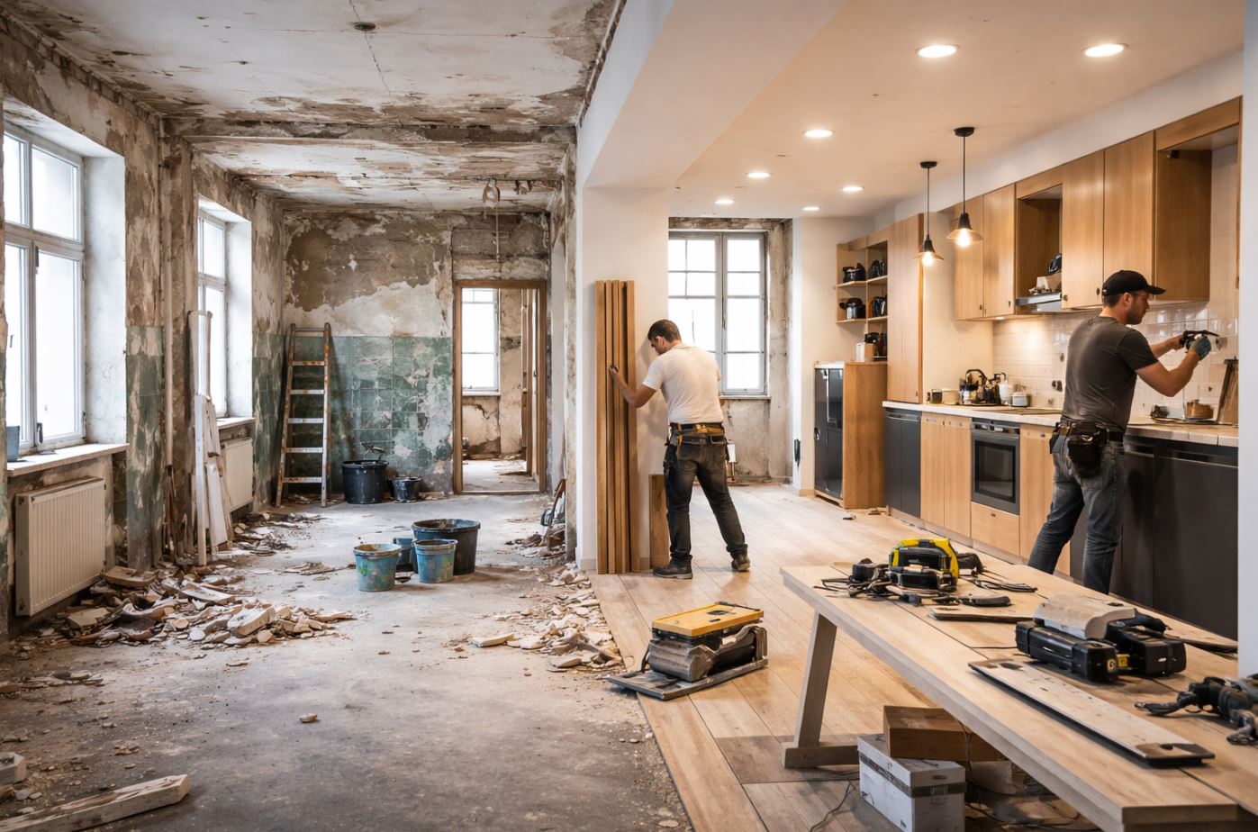 只要掌握正確流程:先評估→拆除→結構防水→水電更新→泥作裝修,就能避免反覆拆修、追加爆預算。